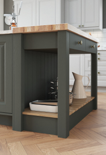 The ornately constructed Jenson door with its moulded, raised centre panel brings your rural space to a different level. Available in oak or any painted finish with a large selection of specially appointed accessories, the number of design possibilities are endless with this classically elegant kitchen.