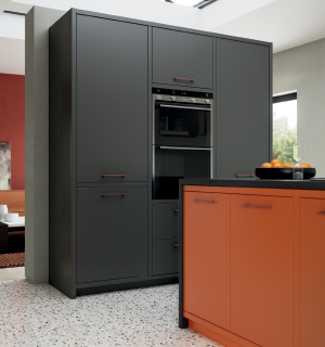 Push the limits of your imagination with the combined appeal of Zori Matte and Ferro. Shown here displaying a mesmerising colour mix of smooth brass and striking blue which compliments perfectly with the exposed brick walls and dark blue elements.